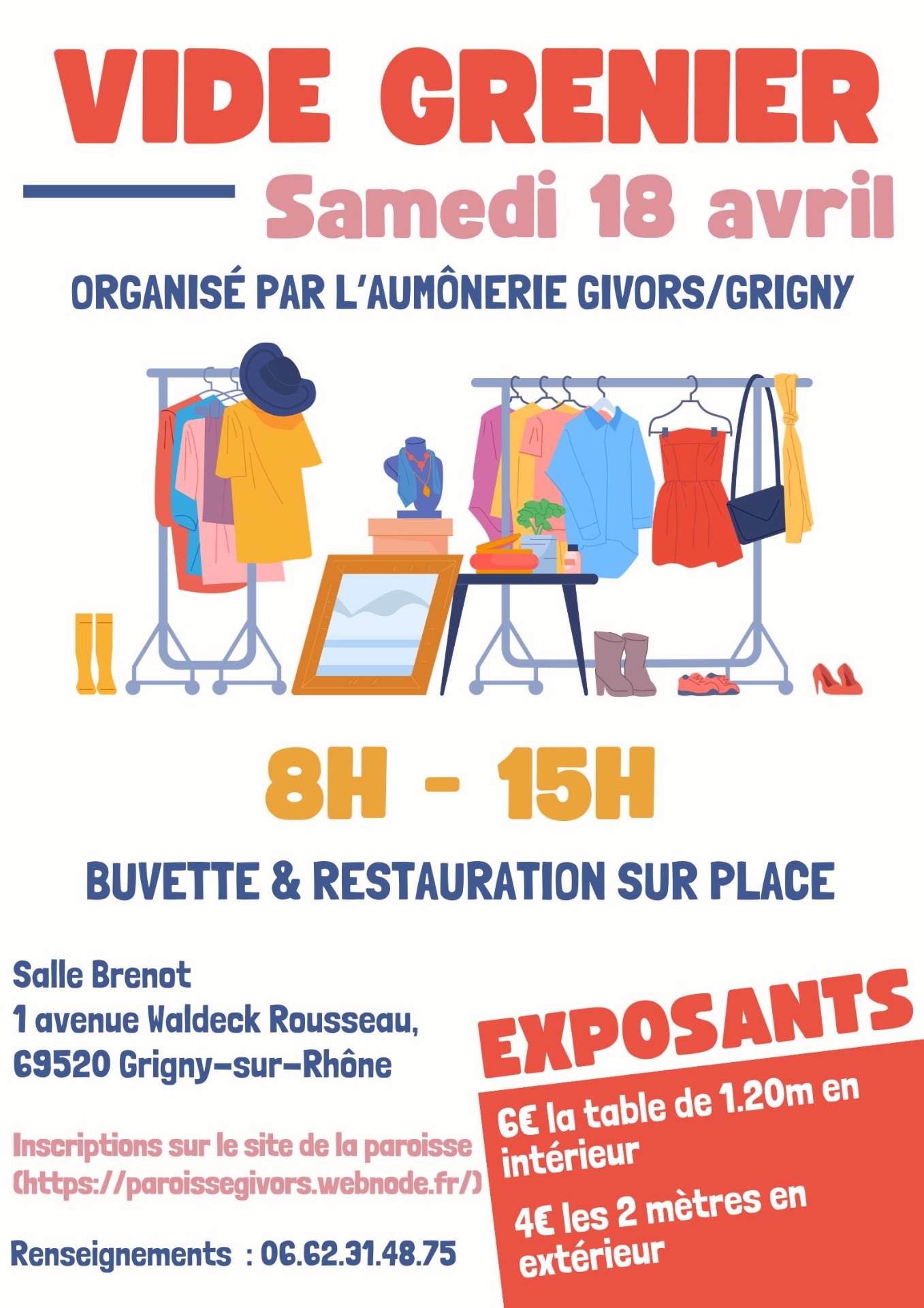 Comme chaque année, l'Aumônerie Givors/Grigny organise son vide grenier annuel le samedi 18 avril.